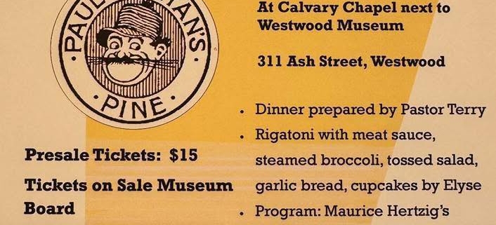 The Westwood Museum will open its 2025 season with the Annual Westwood Museum Dinner on Friday, May 9th, at the Calvary Chapel, next to the museum, on Ash Street in Westwood.